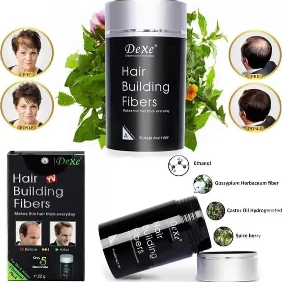 ١. ألياف بناء الشعر (ديكس) مصنوع من بروتين الكيراتين العضوي المماثل لنوع البروتين الموجود في الشعر الحقيقي