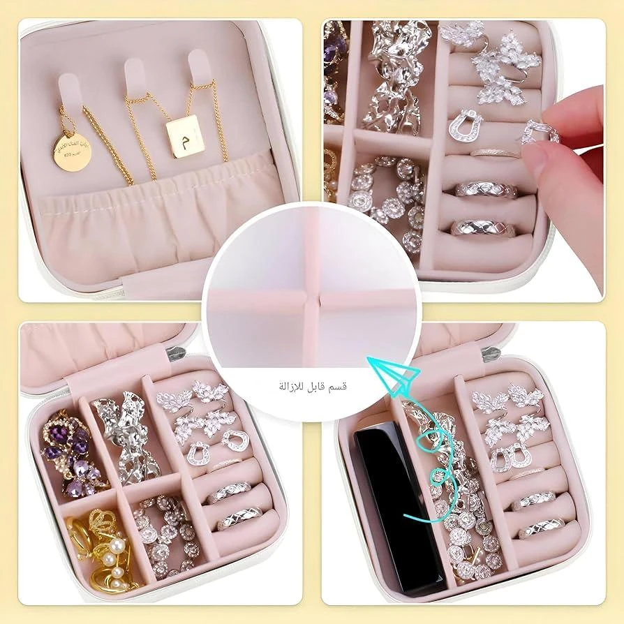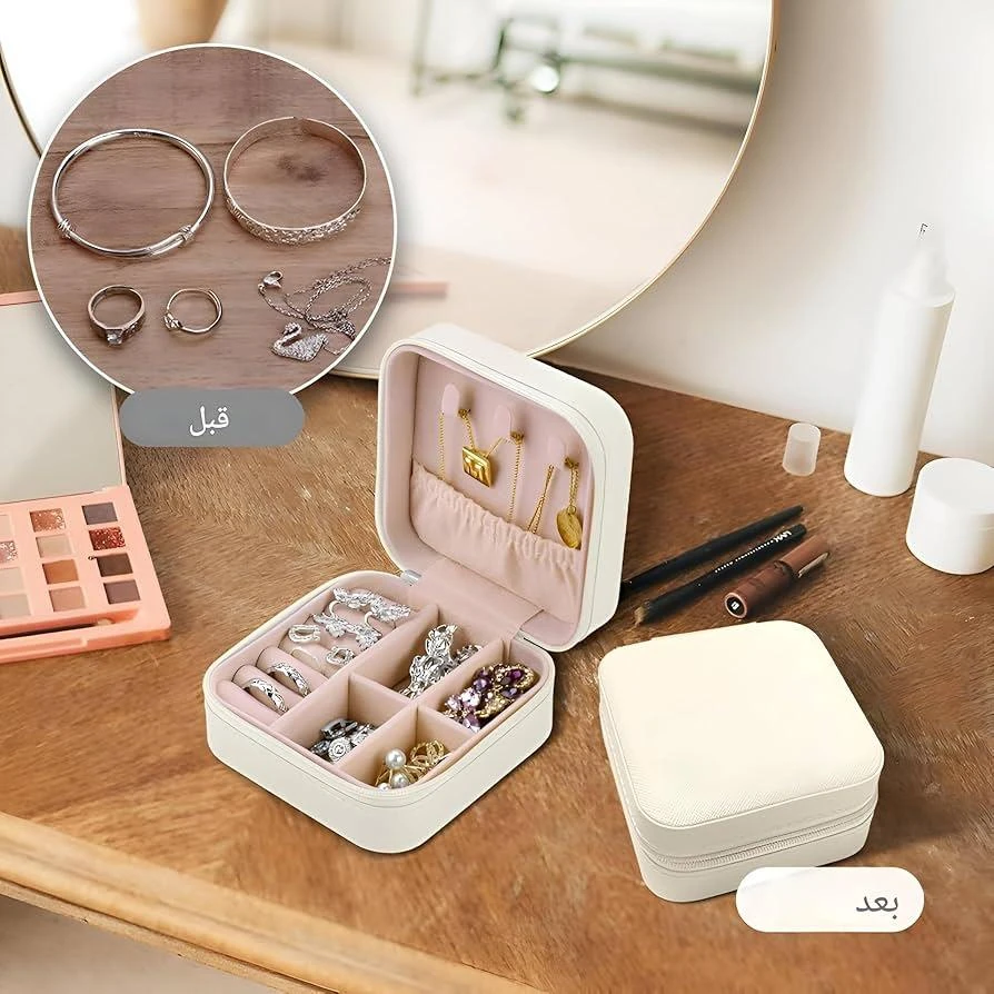 تصميم راقي بلون جذاب مع تقسيمات مرتبة تحافظ على خواتمك، سلاسلِك، أساورك وأقراطك بدون تشابك أو ضياع 💍✨