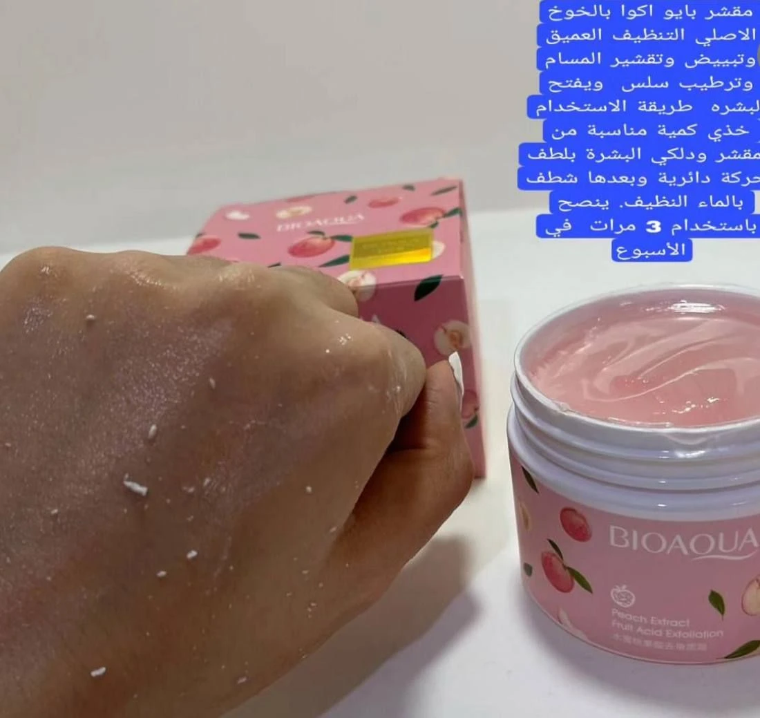 #مقشر_BIOAQUA عالية الجودة اصلي ومكون من حمض الهيالورونيك التقشير الجلد بنكهه الخوخ الفاكهة مقشر للجسم والوجه وكل مناطق الجسم يمكنك استخدامه بالفرك على الجلد هناك فيديوهات للتوضيح