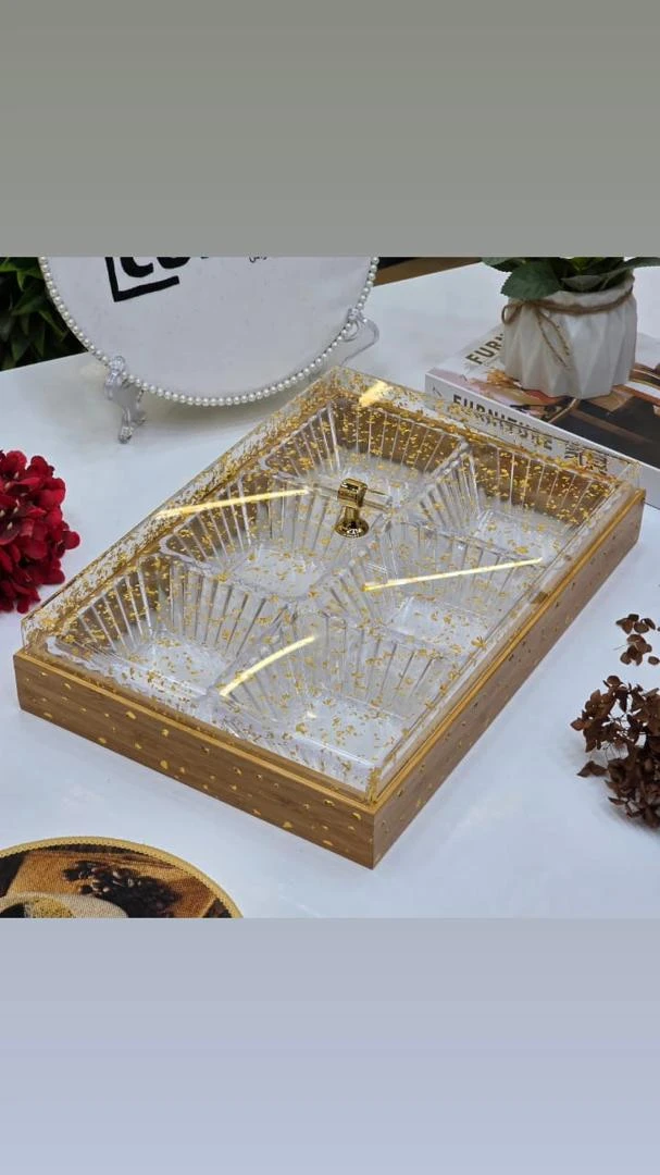 -- تقسيمات مثالية: مساحات منظمة تتيح لكِ تنسيق المكسرات، الفواكه المجففة، والحلويات بشكل فني يفتح الشهية