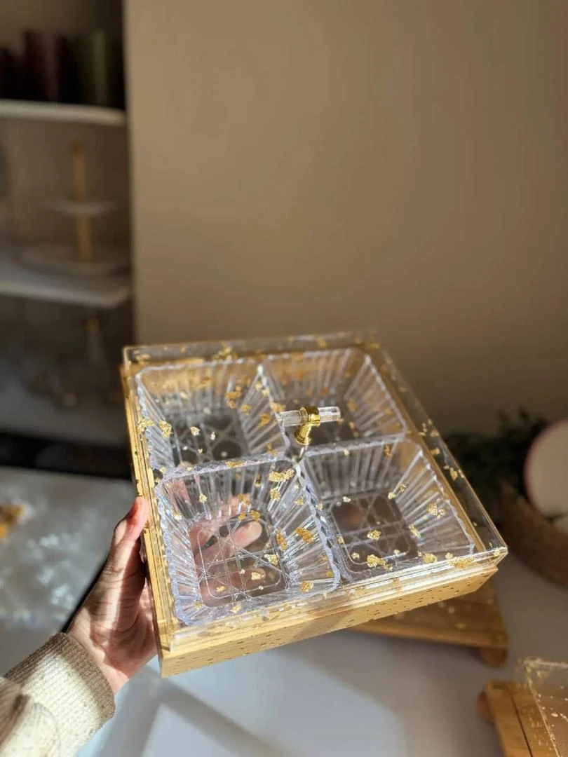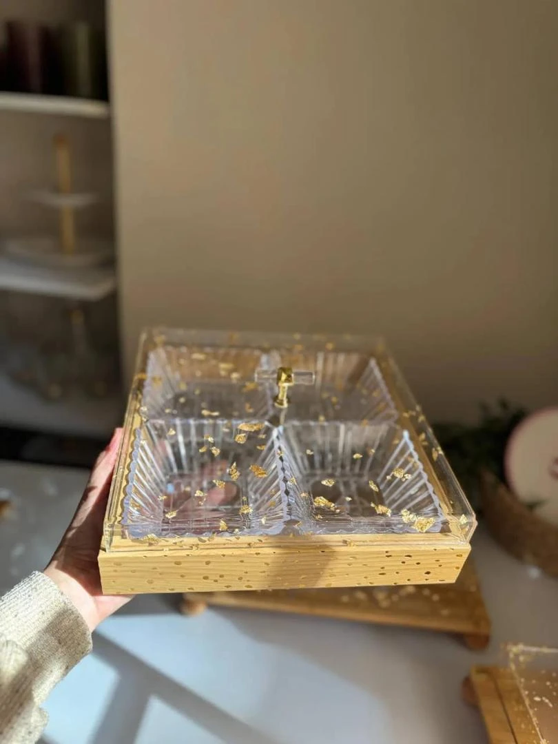 شيال المكسرات والحلويات الخشبي بتصميمه العصري والدافئ، ليضيف لمسة من الرقي على جلساتك العائلية واستقبالاتك😍