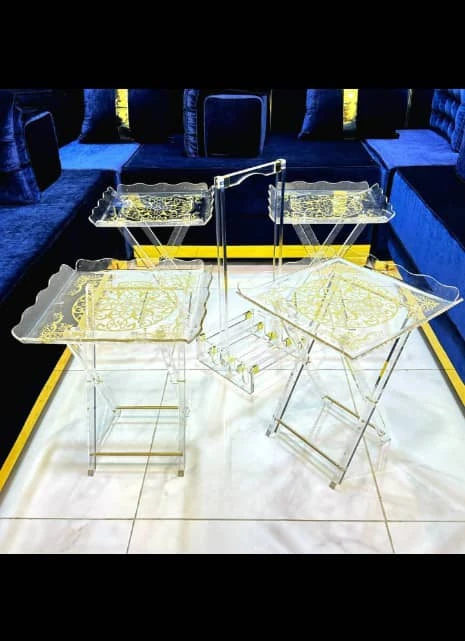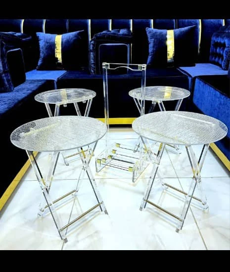 مهما كانت أسلوبك أو ذوقك الديكوري، فإن هذه المجموعة ستكون إضافة جميلة إلى أي مساحة قهوة أو جلوس. اجعل طاولتك تتميز مع هذه المجموعة الفاخرة والأنيقة من طاولات القهوة الأكريليك بتصميمات مختلفة مع حامل.