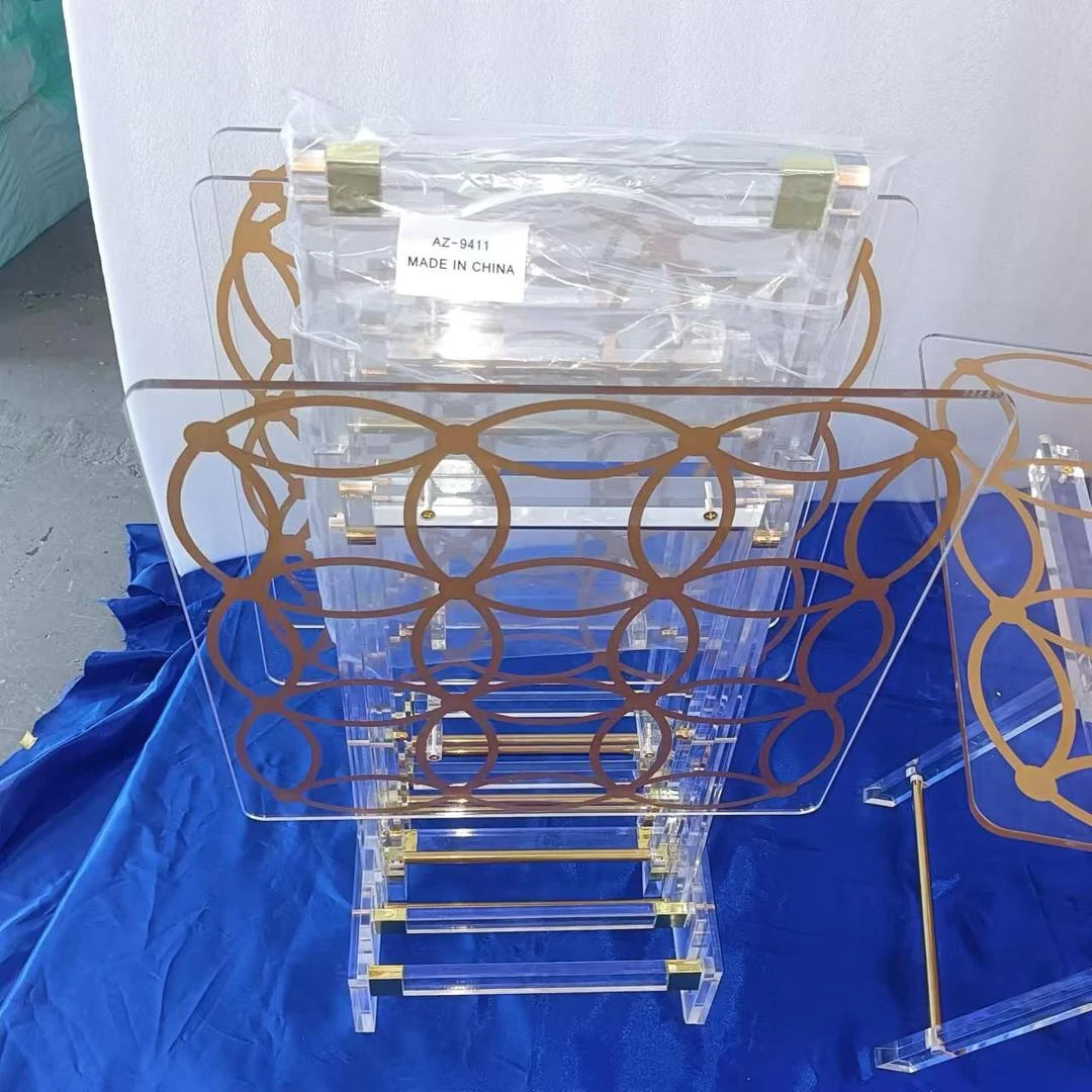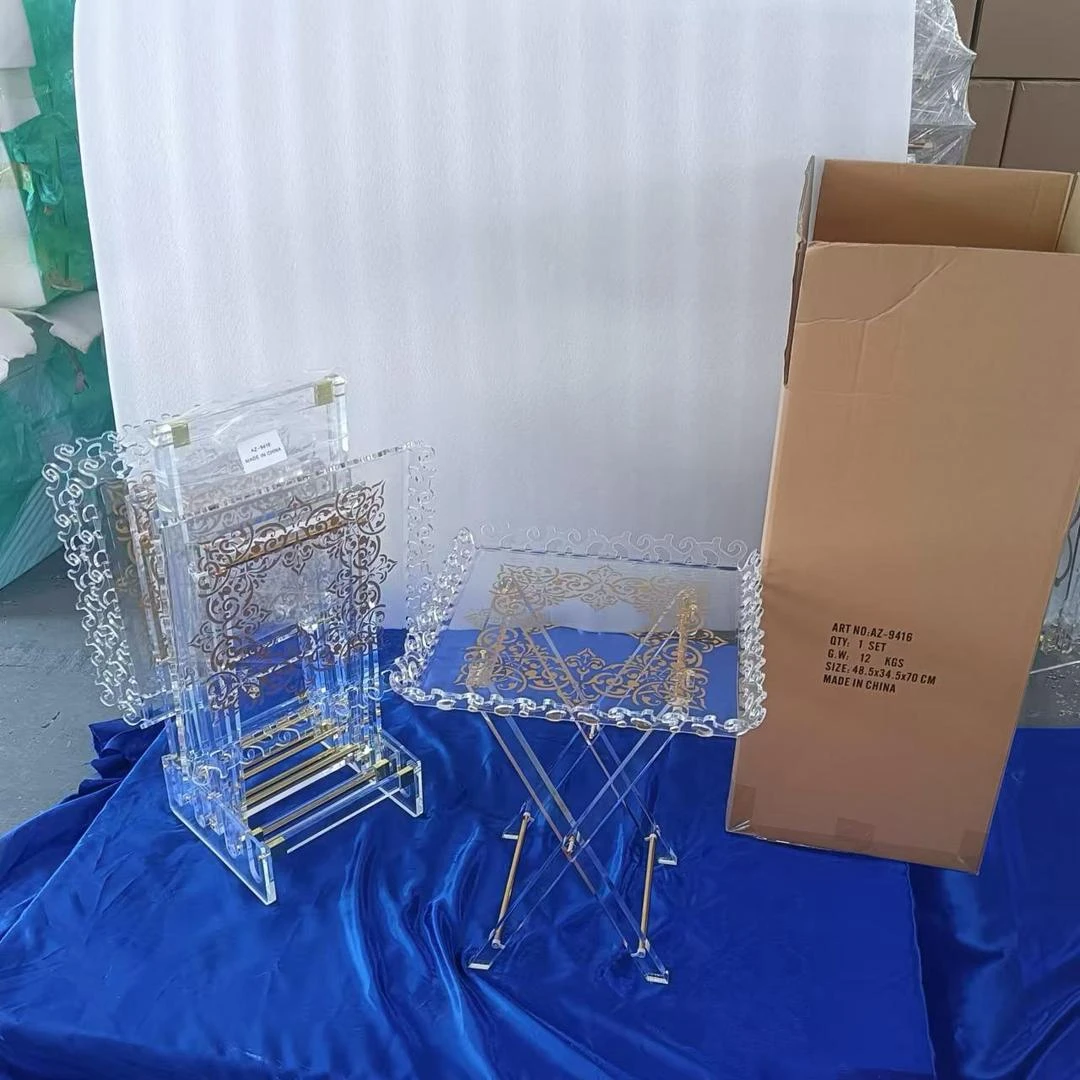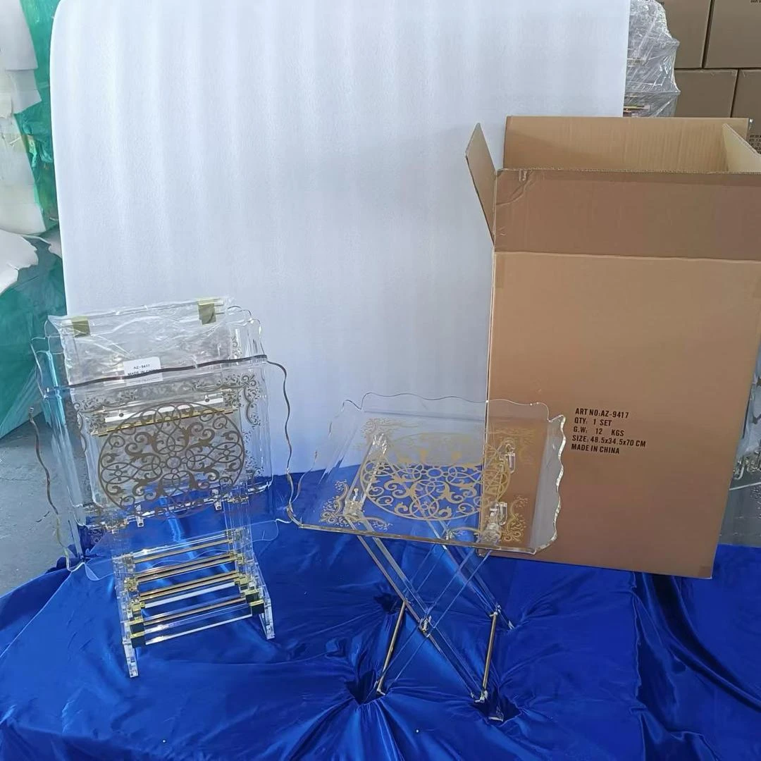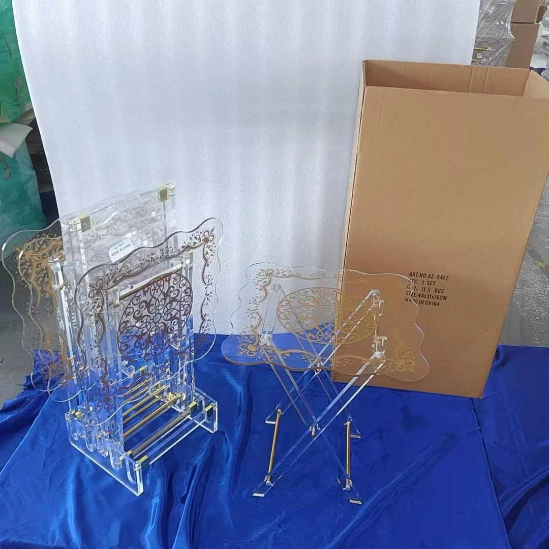 تتكون المجموعة من عدد يعتمد على احتياجاتك من الطاولات المربعة المصنوعة من الأكريليك عالي الجودة. يعطي الأكريليك لمسة عصرية وشفافة للطاولة، مما يمنحها مظهرًا أنيقًا وخفيفًا.